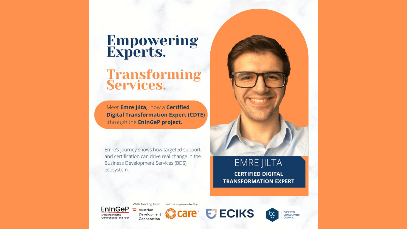 Meet Emre Jılta, one of the newly Certified Digital Transformation Experts (CDTE) through the Enabling Income Generation for the Poor (EnInGeP) project, financed by the Austrian Development Cooperation and jointly implemented by ECIKS and CARE International Balkans. As a Business Solutions Specialist, Emre has over four years of experience in the banking industry and holds both a […]